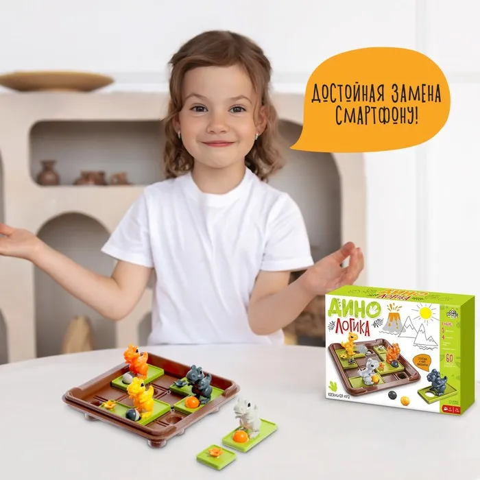 Логическая настольная игра для детей «Головоломка. Дино логика», 1 игрок, 7+ — Характеристики