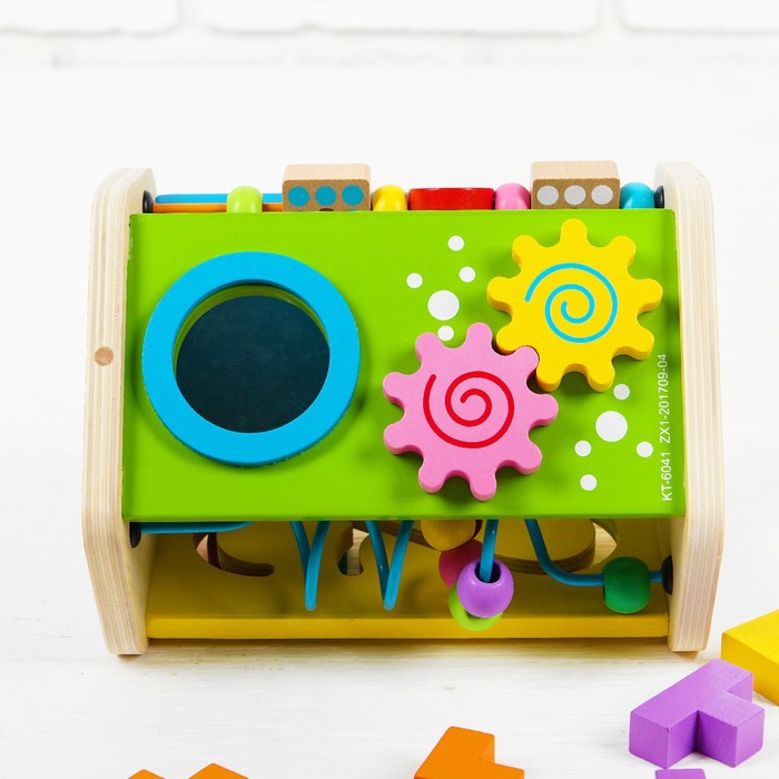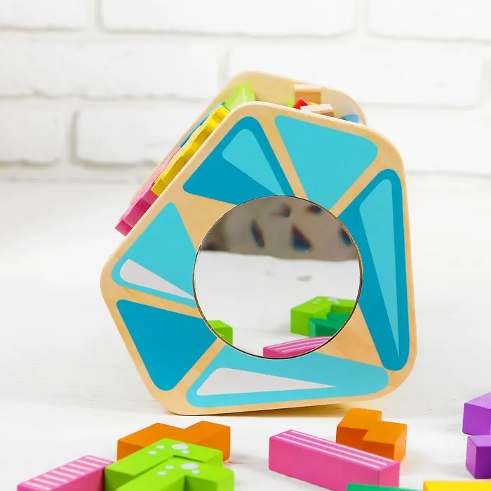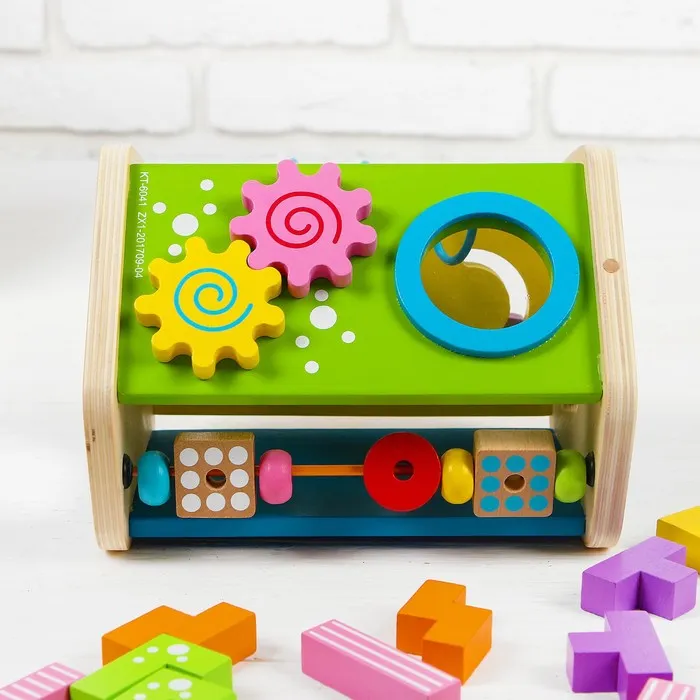 У логического центра множество поверхностей с разными играми. Есть серпантинка, сортер, шестерёнки, счёты и тетрис.