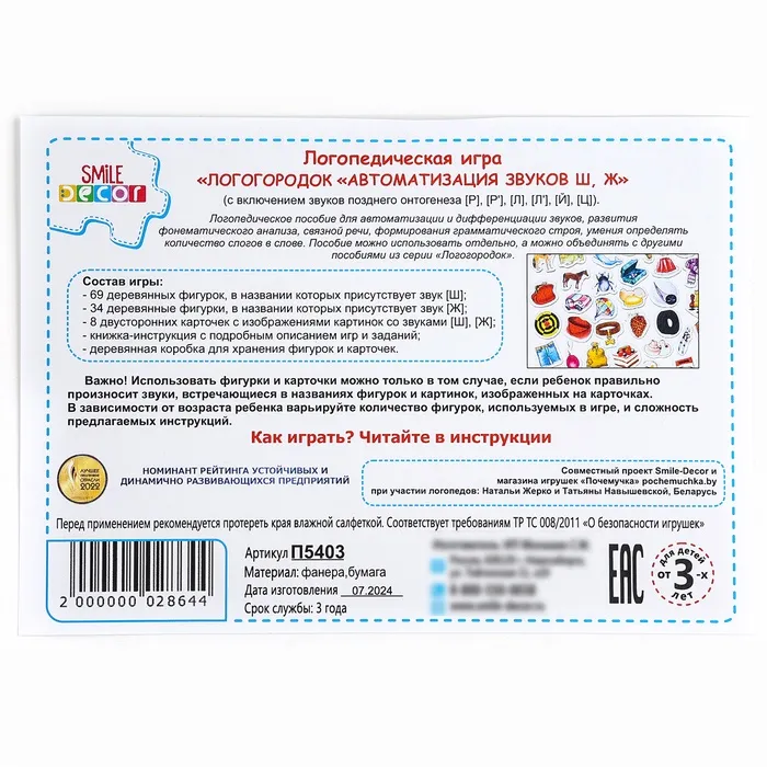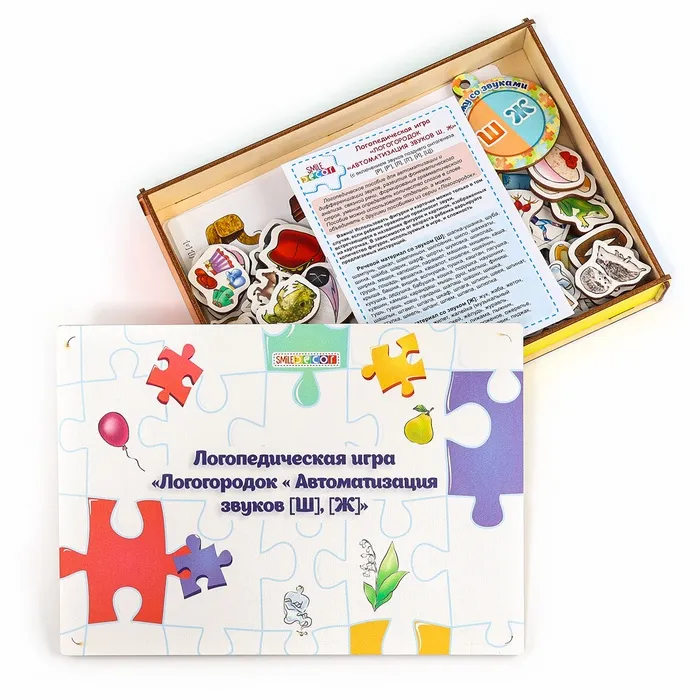 Логопедическая игра «Логогородок: Автоматизация звуков Ш и Ж» — это уникальное пособие для развития правильной речи у детей от 3 лет. Игра создана для автоматизации звуков Ш и Ж, что способствует улучшению произношения и общей речевой активности.