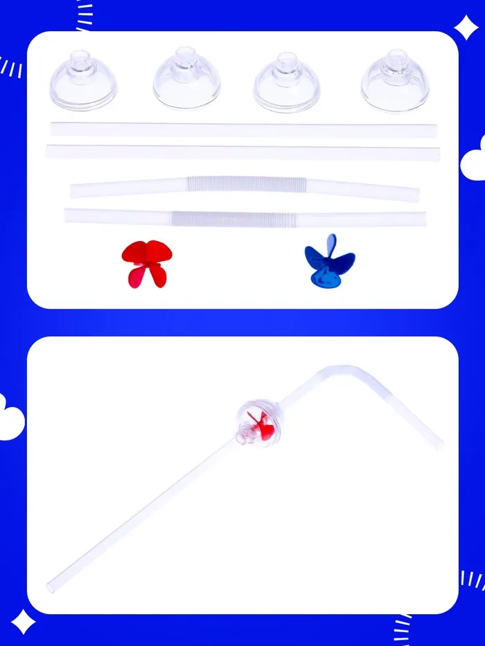 • Положите вертушку в шарик и плавно подуйте в трубочку так, чтобы вертушка крутилась.