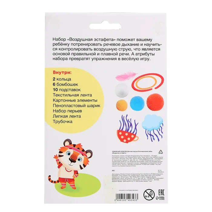 Логопедический набор для развития речи и дыхания «Воздушная эстафета», дыхательный тренажёр, 3+ — Характеристики