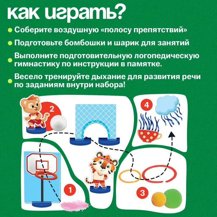 - Весело тренируйте дыхание по заданиям внутри набора.