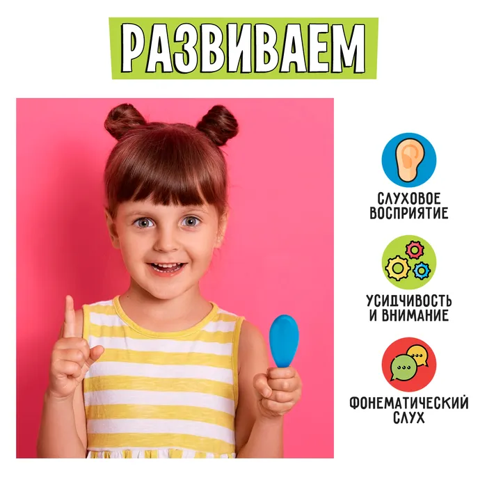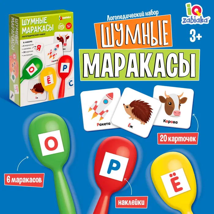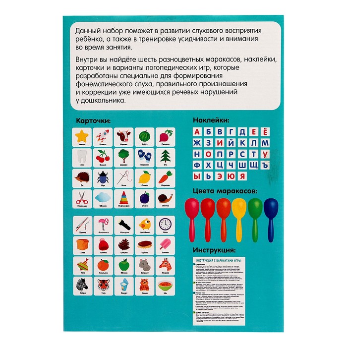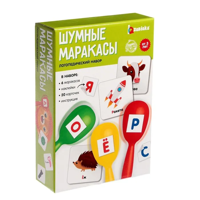 Логопедический набор «Шумные маракасы» создан для детей от 3 лет. Он поможет развить слуховое восприятие, внимание, усидчивость. Задания игры направлены на формирование правильного произношения звуков, букв и корректировку имеющихся нарушений у ребёнка.