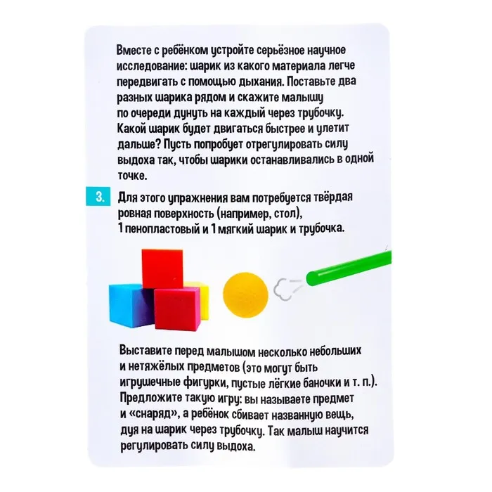 - Усложняйте задание: попробуйте силой одного выдоха отправить шарик как можно дальше.