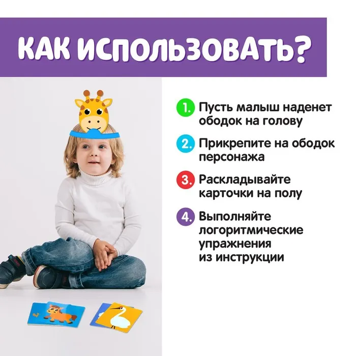 Внутри вы найдёте 2 ободка с двумя персонажами и 10 заданий на отработку звуков.