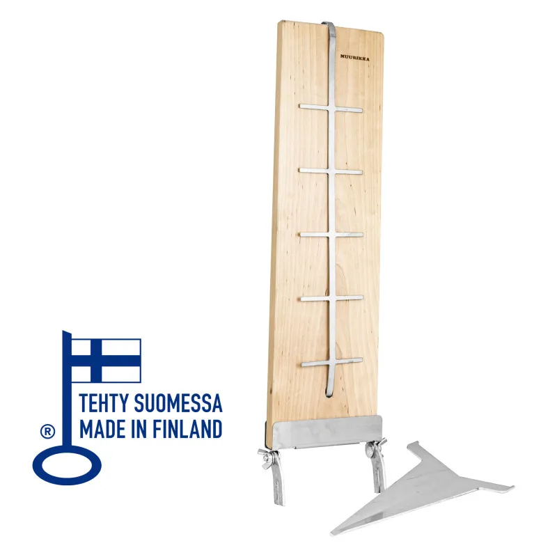 Доска снабжена съемным клином для установки в землю рядом с костром. Без клина доску можно установить на край кухни или костровой ямы Muurikka с помощью специальной подставки.