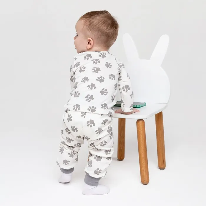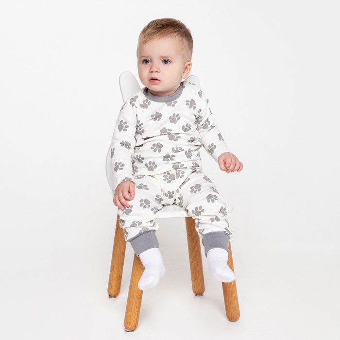 Лонгслив детский «Лапки», цвет белый/серый, рост 62 см — Характеристики