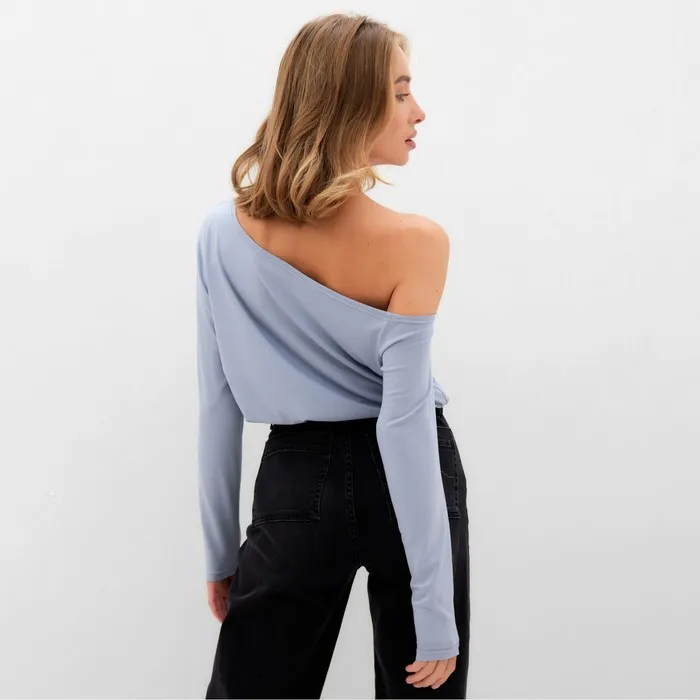 Лонгслив на одно плечо женский MINAKU: Basic line, серый, размер 50 — Характеристики