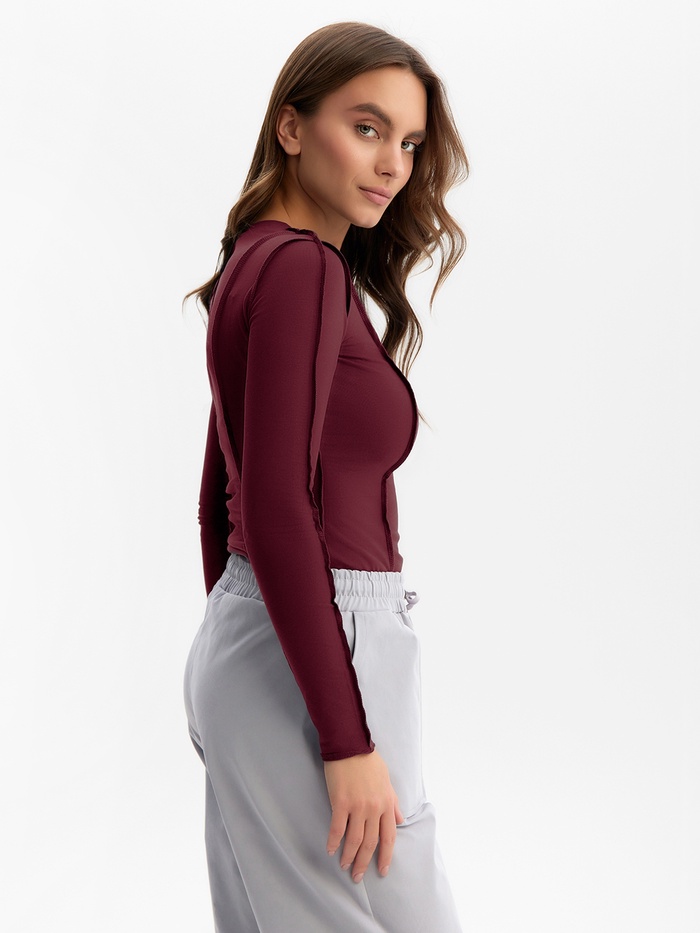 Лонгслив с декоративными швами MIST, размер 42, бордовый — Характеристики