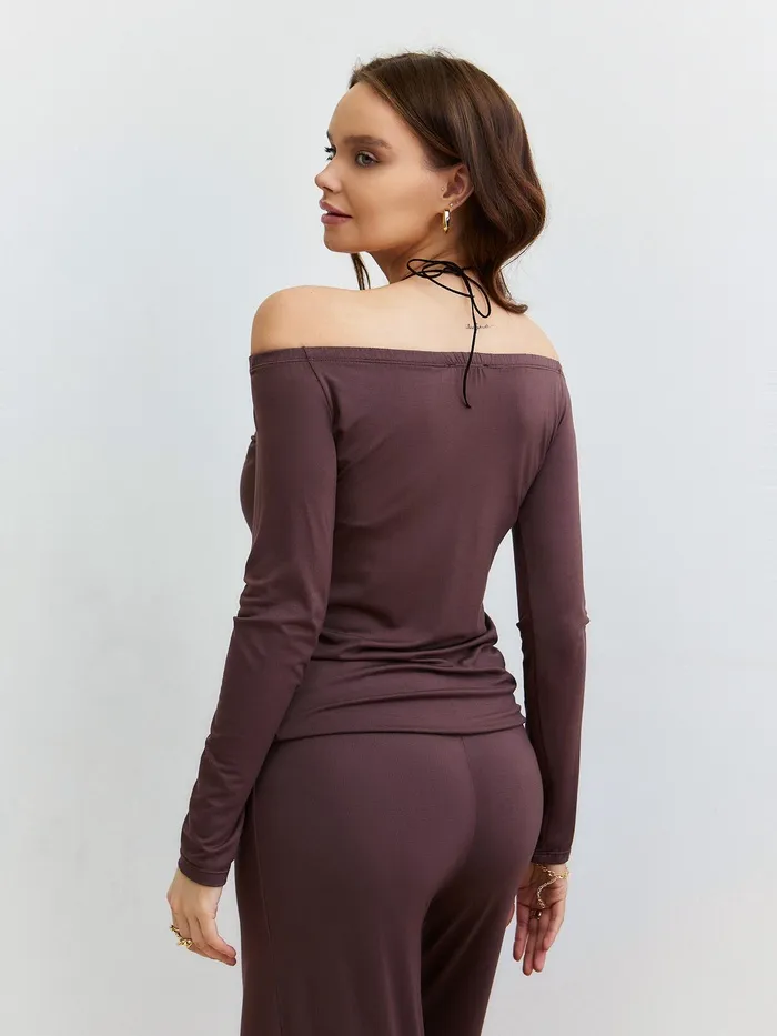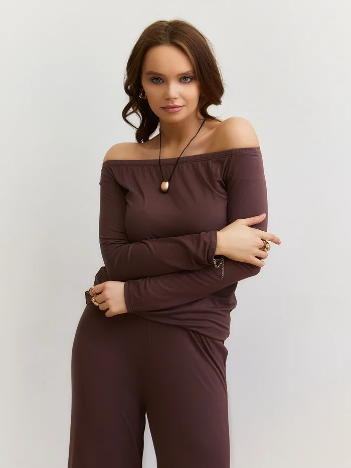 Лонгслив с открытыми плечами женский MIST, размер L, коричневый — Характеристики