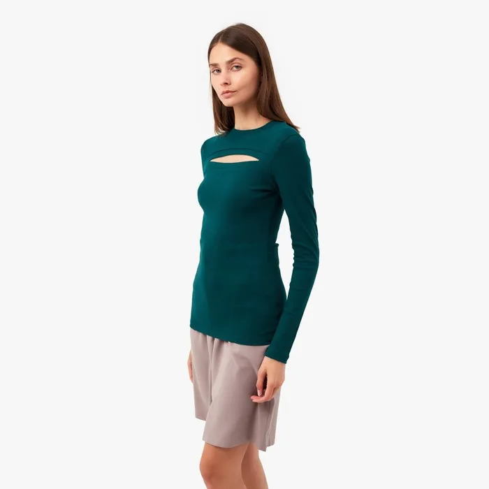 Лонгслив с вырезом на груди женский MINAKU: Basic line, изумрудный, размер 44 — Характеристики