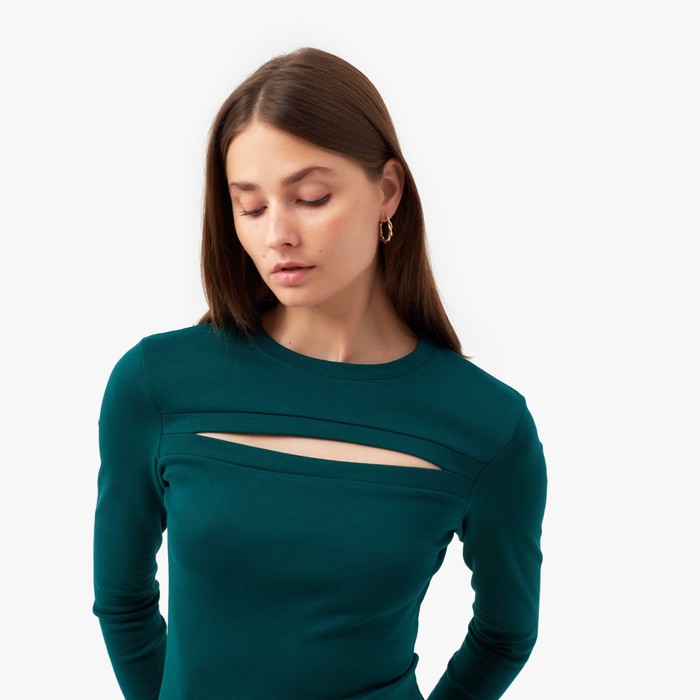 Лонгслив с вырезом на груди женский MINAKU: Basic line, изумрудный, размер 44 — Характеристики