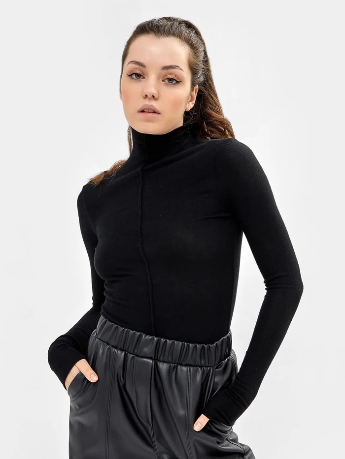 Лонгслив с вырезом на груди женский MINAKU: Basic line, шоколадный, размер 44 — Характеристики