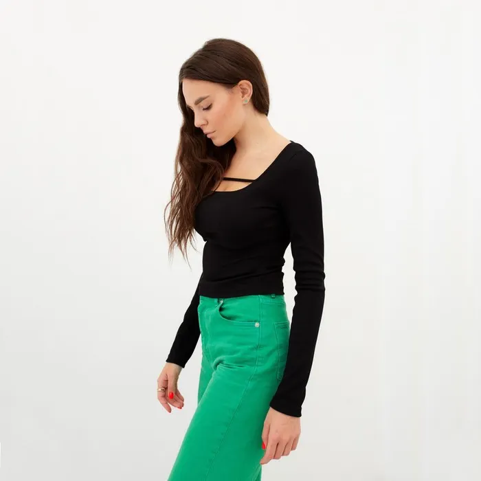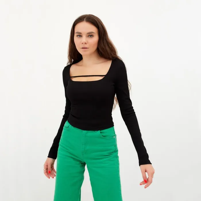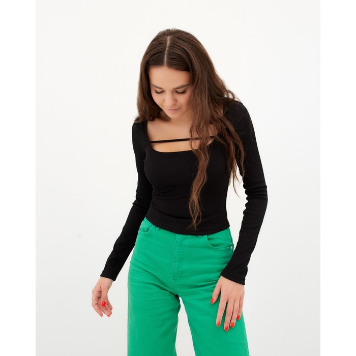 Лонгслив с вырезом женский MIST, размер 48-50, чёрный — Характеристики