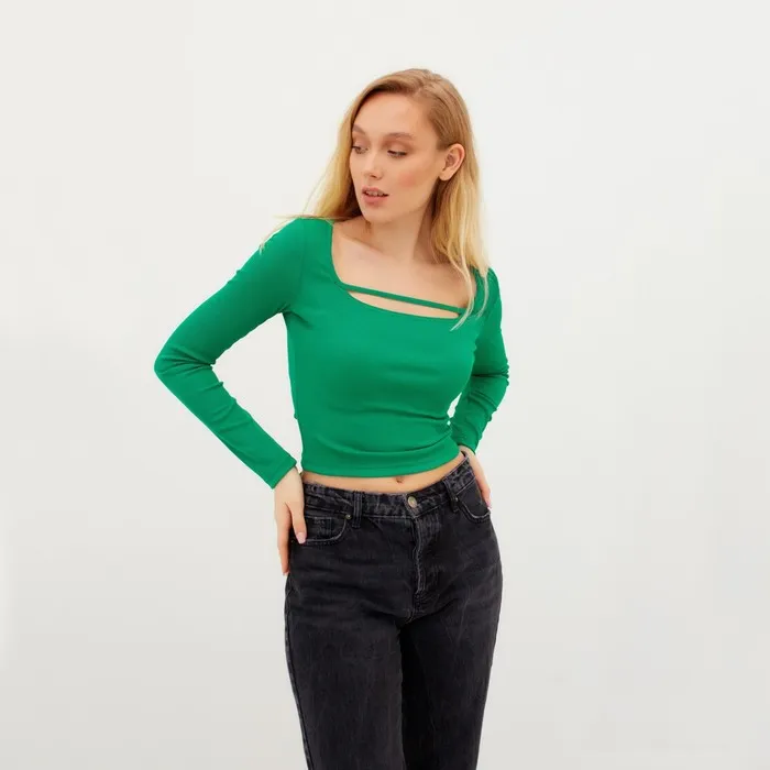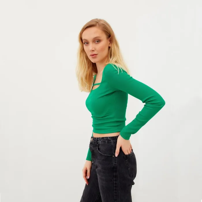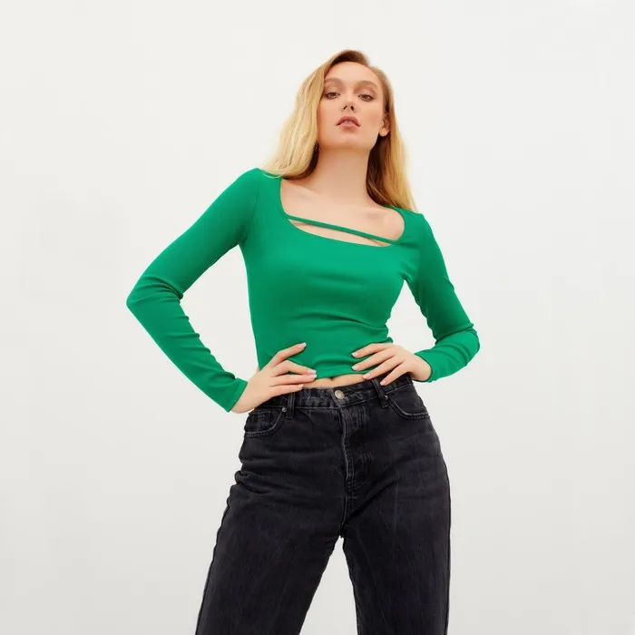Лонгслив с вырезом женский MIST, размер 48-50, зелёный — Характеристики