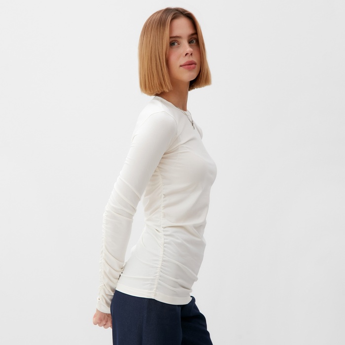 Лонгслив со сборкой женский MINAKU: Casual Collection, цвет экрю, размер 44