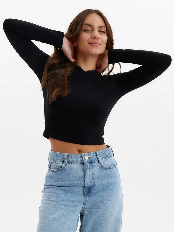 Лонгслив женский MINAKU: Basic line, чёрный, размер 46 — Характеристики