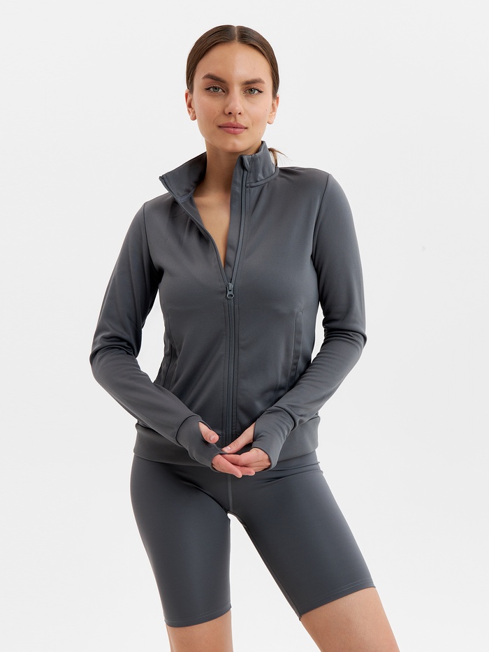 Лонгслив женский Resport, на молнии, р. 50, цвет серый, базовый, с длинным рукавом