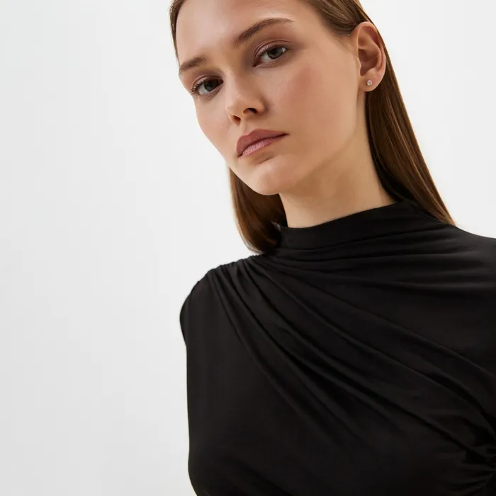 Лонгслив женский с драпировкой MIST Classic Collection, размер 44, черный — Характеристики