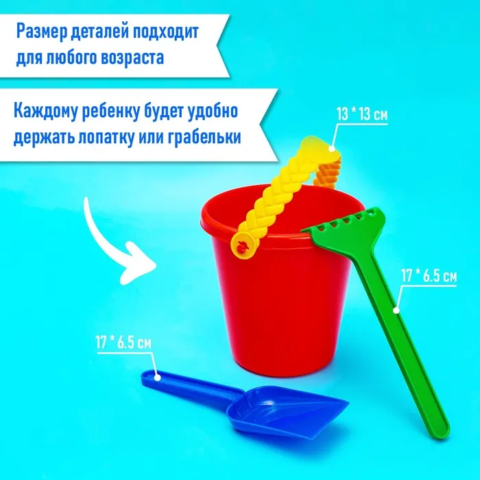 - Длина 53,5 см — удобный вариант для детей разного возраста. С такой лопаткой ребёнок сможет копать песок, рыхлить землю или строить крепости без лишних усилий.