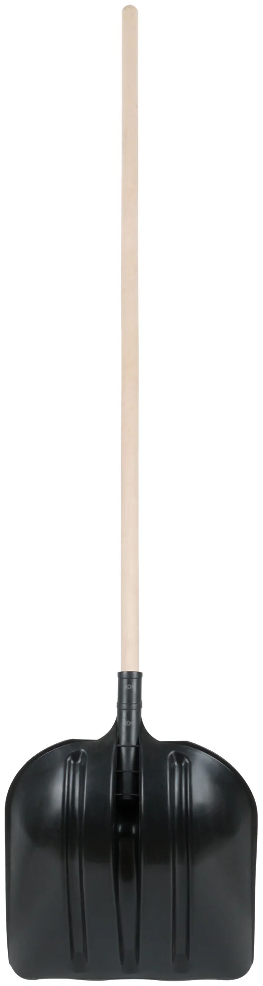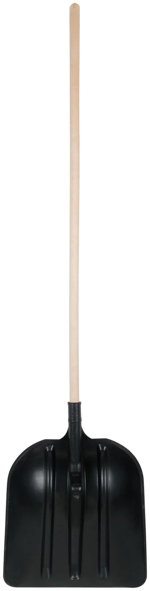 Лопата оснащена прочным деревянным черенком, который обеспечивает надежный захват и удобство в использовании. Пластиковый ковш легкий, но прочный, что позволяет эффективно перемещать снег без лишних усилий. Размеры лопаты 400х470х1600 мм, что делает её идеальной для использования на больших открытых пространствах.