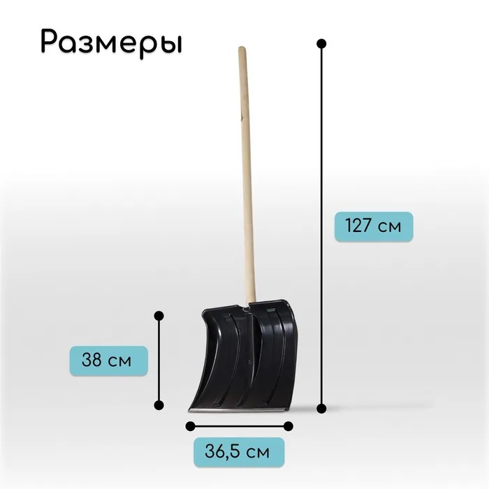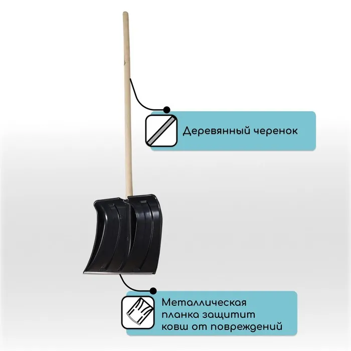 Лопата для уборки снега, пластиковый ковш 380×365 мм, металлическая планка, деревянный черенок, «Снеговик» — Характеристики