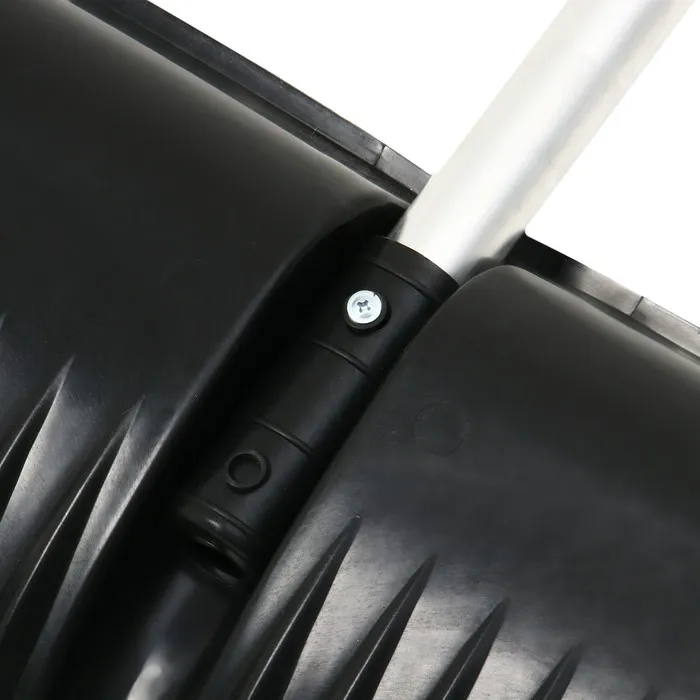 Рабочая часть лопаты сделана из качественного морозостойкого пластика, что обеспечивает прочность и устойчивость к низким температурам. Черенок выполнен из лёгкого, но прочного алюминия, благодаря его небольшому весу вы не устанете во время уборки.