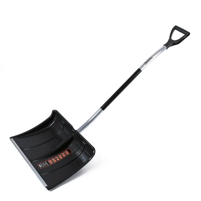 Рабочая часть лопаты сделана из качественного морозостойкого пластика, что обеспечивает прочность и устойчивость к низким температурам. Черенок выполнен из лёгкого, но прочного алюминия, благодаря его небольшому весу вы не устанете во время уборки.