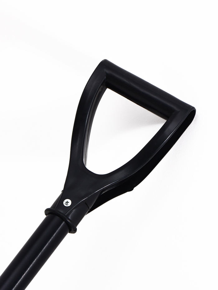 • Стальной черенок с рукоятью: металлическая основа не гнётся под весом снега. Черенок сохраняет жёсткость при работе.
