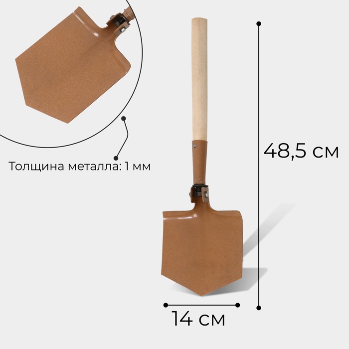 Лопата туристическая, складная, L = 48,5 см, деревянный черенок, С-1 — Характеристики