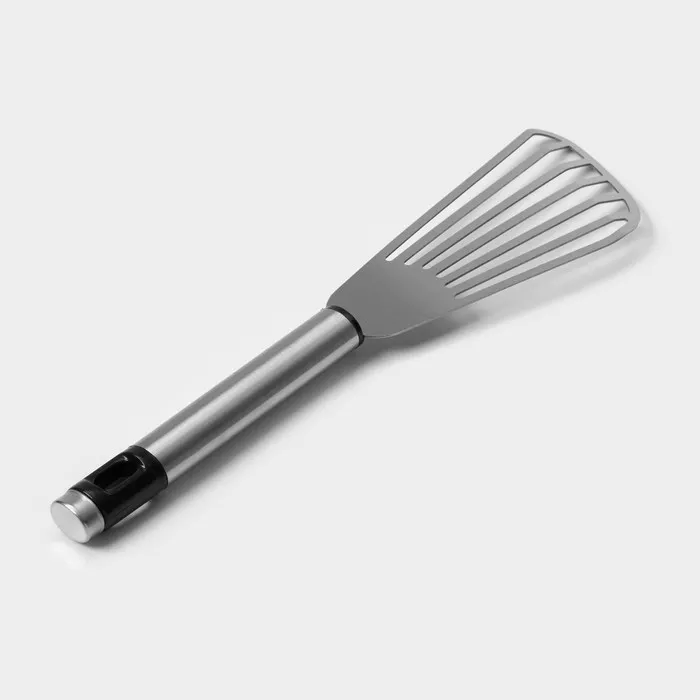 Эта лопатка идеально подходит для переворачивания мяса, рыбы, овощей и других блюд. Благодаря своей форме, она легко проникает под еду, не повреждая ее и не прилипая.