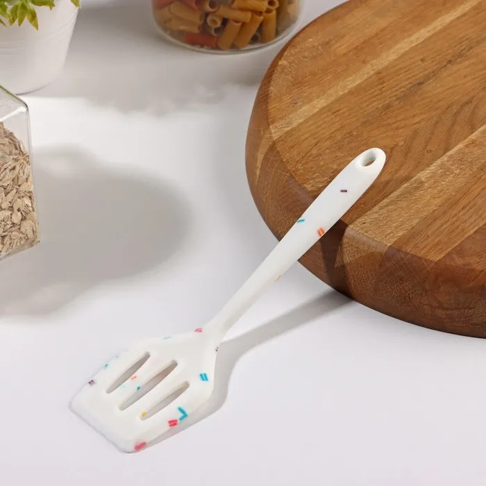 Изделие выполнено из пищевого силикона. Главное преимущество силиконовых лопаток – это то, что они не царапают поверхность посуды и не впитывают запахи, а также легко моются.