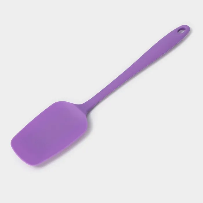 Изделие выполнено из пищевого силикона. Главное преимущество силиконовых лопаток – это то, что они не царапают поверхность посуды и не впитывают запахи, а также легко моются.