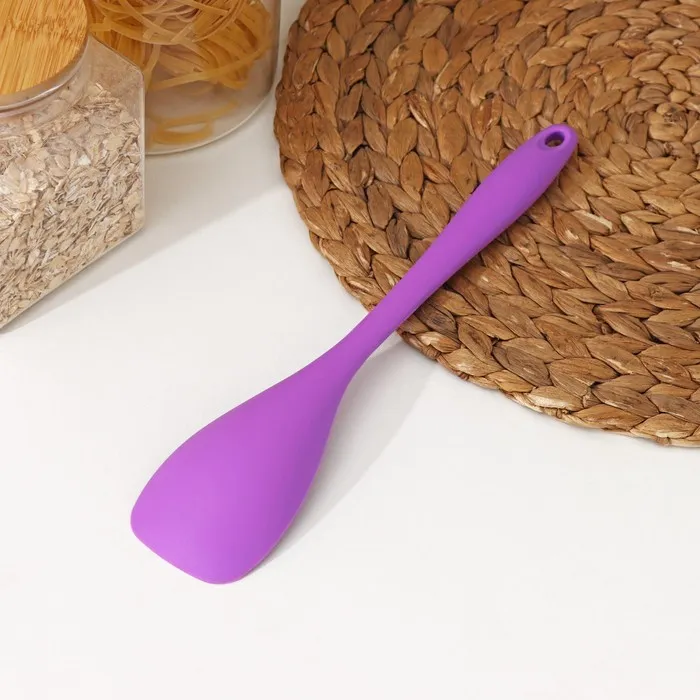 Изделие выполнено из пищевого силикона. Главное преимущество силиконовых лопаток – это то, что они не царапают поверхность посуды и не впитывают запахи, а также легко моются.