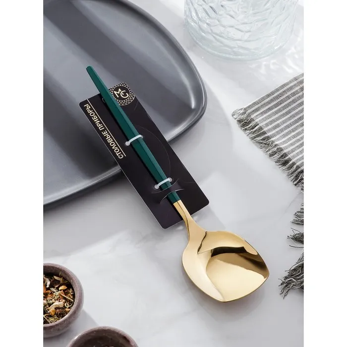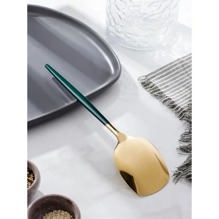 Лопатка из нержавеющей стали Magistro «Грэйс», длина 26 см, цвет ручки зелёный, цвет головы золотой — Характеристики