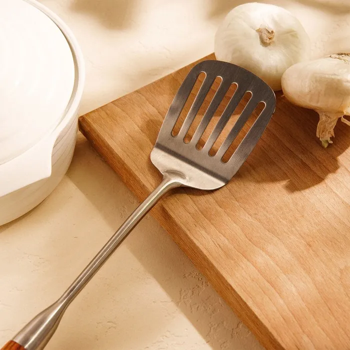 Лопатка перфорированная SL Home «Рустик» — идеальный инструмент для кухни. Изготовлена из высококачественной нержавеющей стали и дерева, что гарантирует её прочность и долговечность. Отличительная особенность этой модели — перфорация, которая обеспечивает равномерное распределение тепла и облегчает процесс готовки.