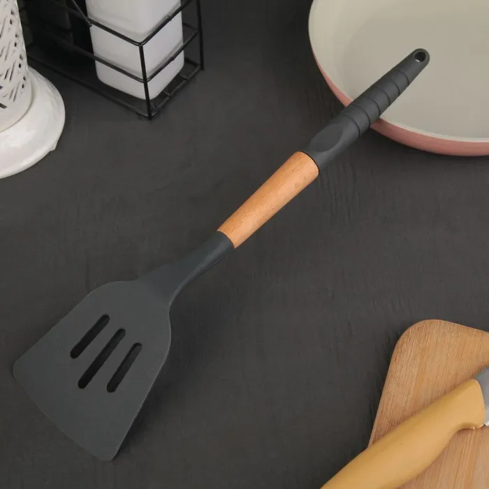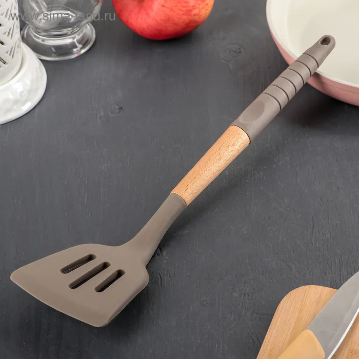 Лопатка с прорезями Доляна «Брауни», 32×7 см, серая, бежевая — Характеристики