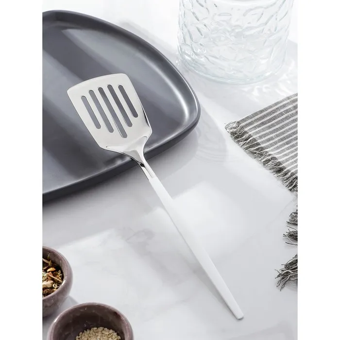 - Прорези на лопатке помогают стекать лишнему маслу и соусу — блюдо остаётся аккуратным и менее жирным.