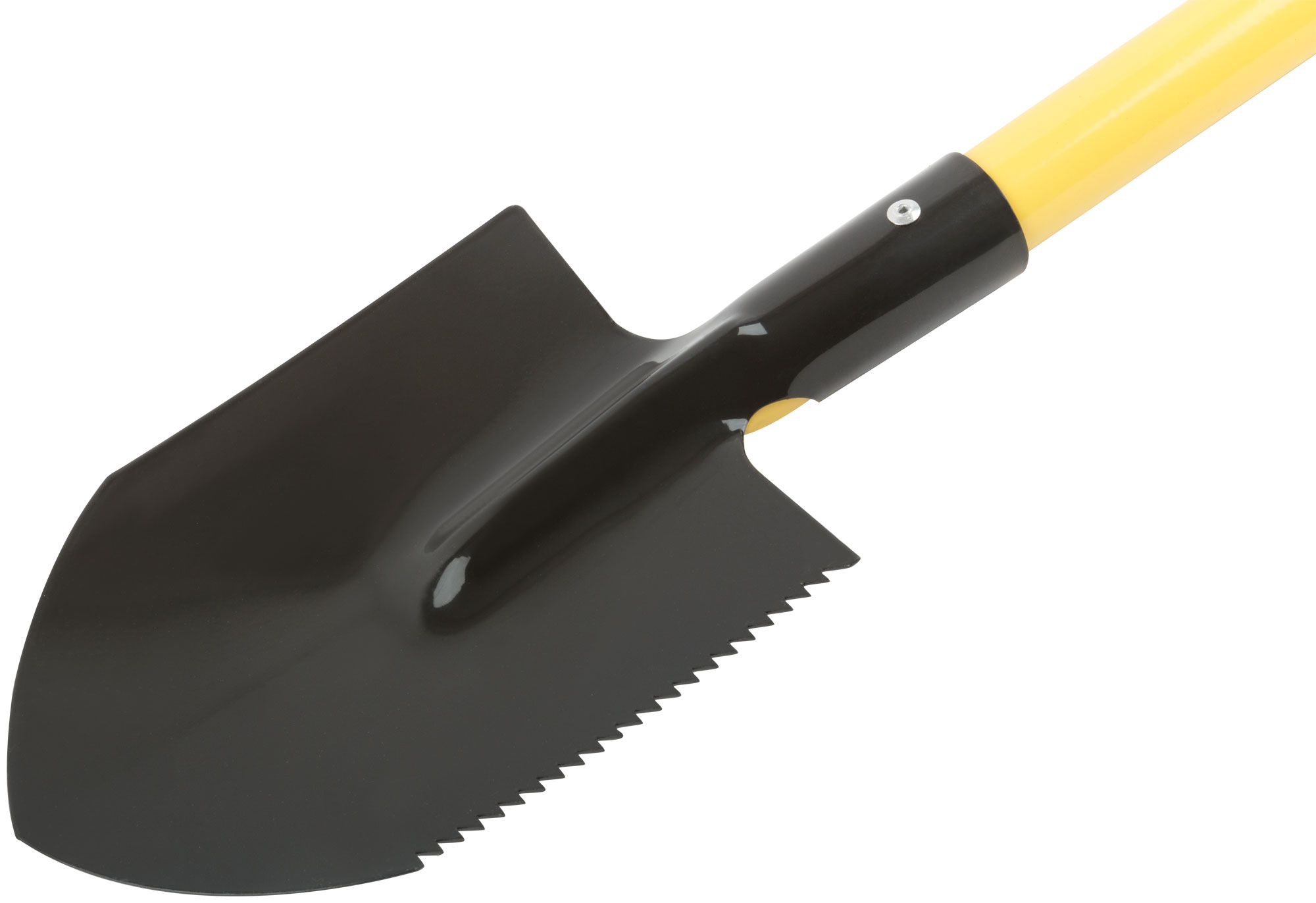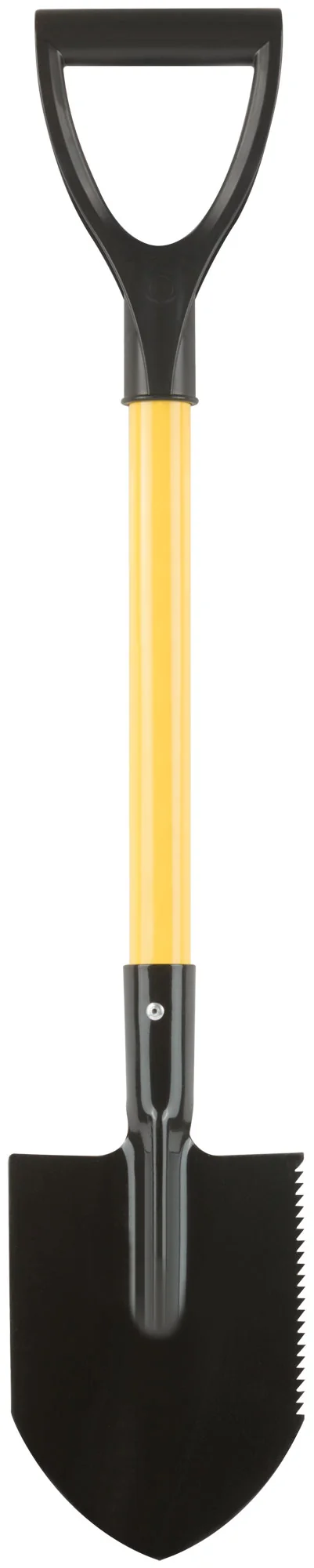 Лопатка оснащена металлическим черенком, что обеспечивает высокую прочность и надежность конструкции. V-образная ручка сделана для максимального комфорта при работе, снижая нагрузку на кисть.