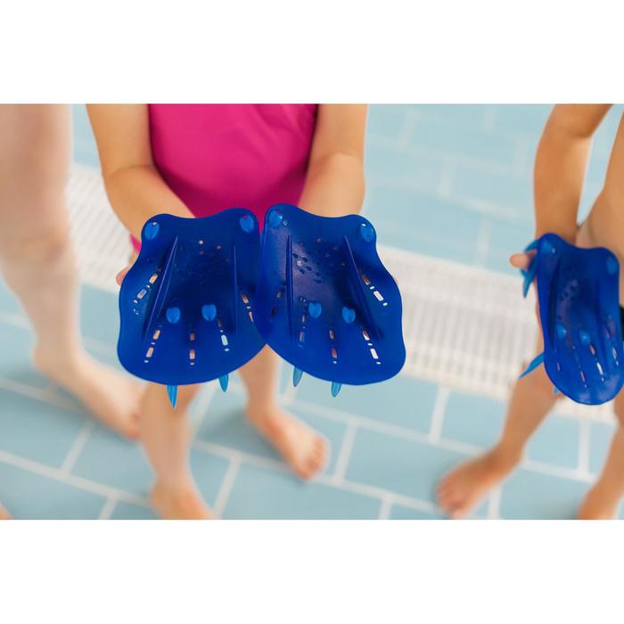 Лопатки для плавания надеваются на кисти рук пловца и фиксируются на ладонях. Их предназначение – увеличение скорости и силы гребка. При использовании лопаток увеличивается площадь захвата водного потока во время гребка, что помогает лучше чувствовать воду и её сопротивление, это помогает быстрее и эффективнее выработать правильную технику и отточить верную амплитуду движения рук.