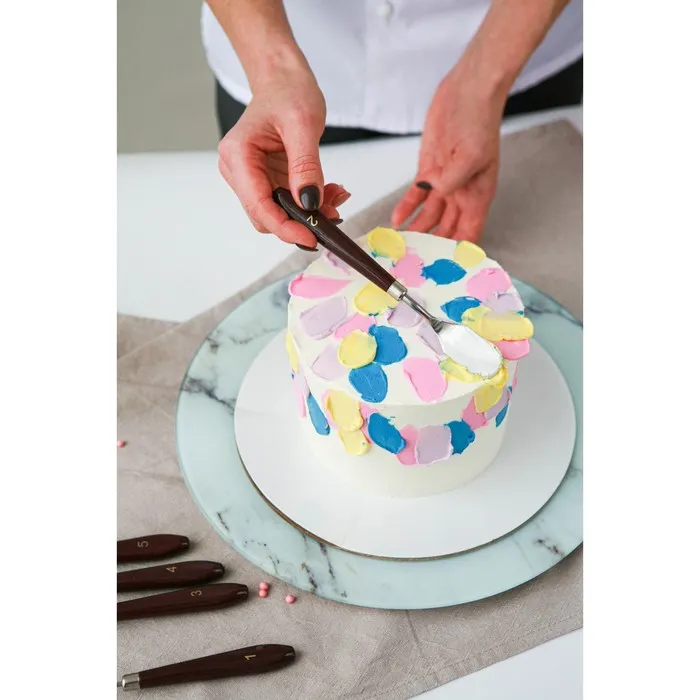 • Легкость в использовании: мастихины идеально сбалансированы, что позволяет без усилий обрабатывать тесто и кремы, создавая идеальные слои и узоры.