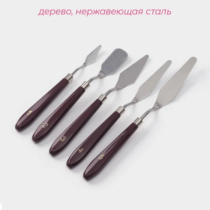 Лопатки - мастихины кондитерские Доляна, 22×2×1.5 см, набор 5 шт., нержавеющая сталь, коричневые — Характеристики