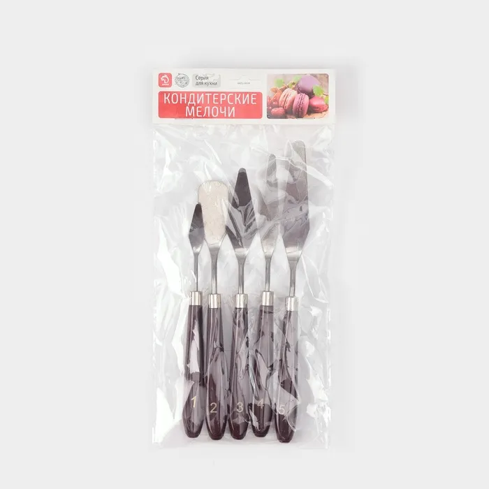 Погрузитесь в мир кулинарного творчества с набором кондитерских мастихинов, которые откроют перед вами безграничные возможности в приготовлении и декорировании блюд! В комплект входят 5 мастихинов различных форм и размеров, каждый из которых станет незаменимым инструментом на вашей кухне.