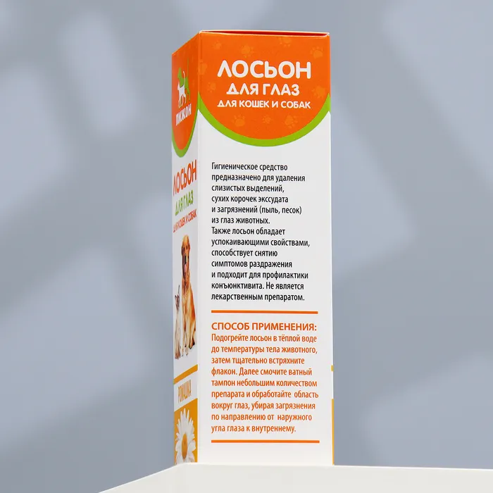 экссудата и загрязнений (пыль, песок) из глаз животных.