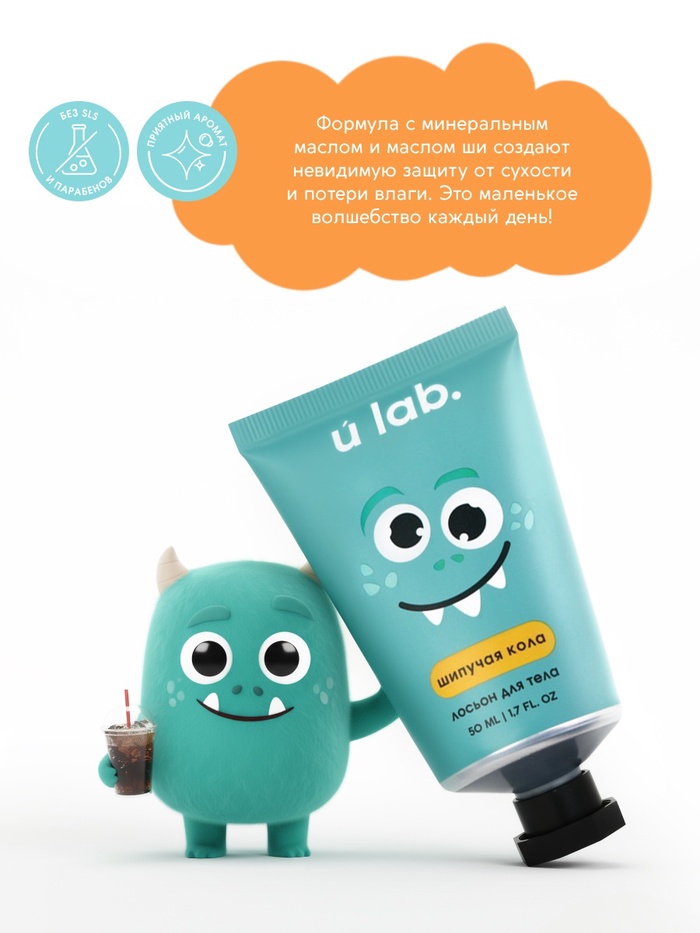 Лосьон для тела детский «Монстрики», аромат шипучая кола, ULAB — Характеристики