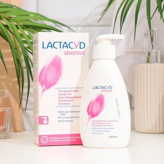 Увлажнить и успокоить интимную зону поможет нежное средство для интимной гигиены для чувствительной кожи Lactacyd Sensitive с pH 5.2 и молочной кислотой.