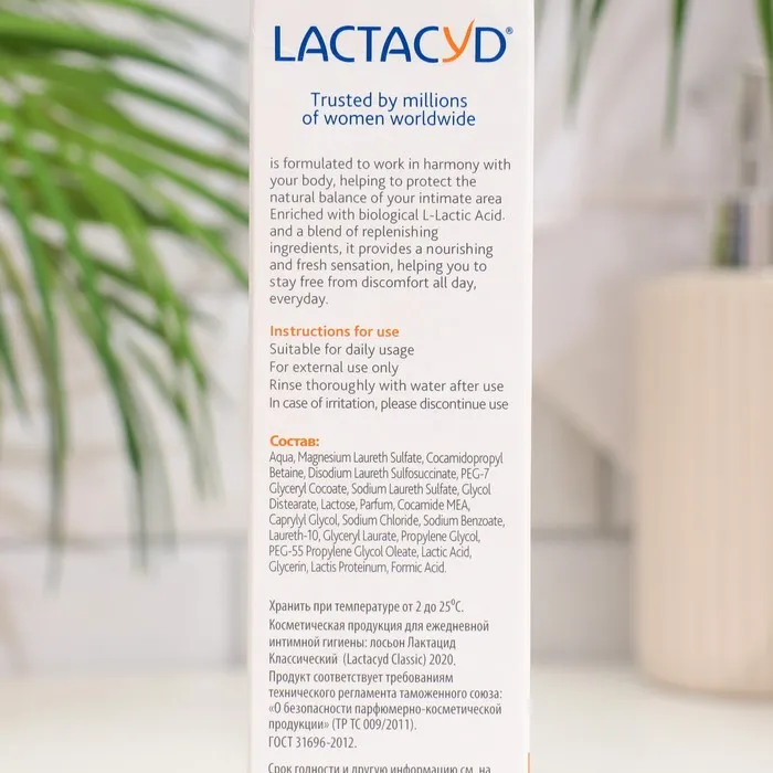 Гель-средство для интимной гигиены Lactacyd имеет pH 5.2, который максимально приближен к естественному. Благодаря этому вы получаете невероятно деликатный и супер нежный уход.