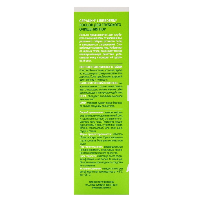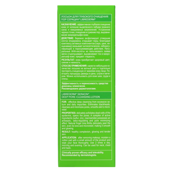 Серацин Либридерм – полная замена средств для ухода за проблемной кожей ,включающая как проверенные активные компоненты, так и новые инновационные комплексы, которые показали свою эффективность в испытаниях in vitro и in vivo Результат: кожа обретает здоровый внешний вид, без блеска и высыпаний.