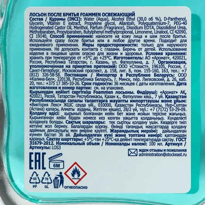 Описание: лосьон после бритья Foammen "Бодрящая свежесть" освежает и тонизирует кожу. Содержит витамин Е, который нормализует работу сальных желез, стимулирует естественное обновление клеток. Ментол обладает противовоспалительным и антисептическим свойствами, нейтрализует покраснения, анестезирует и освежает, тонизирует кожу и повышает её защитные свойства.