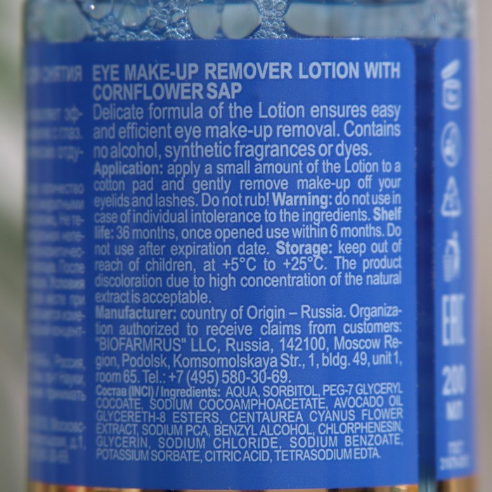 Лосьон с васильком Librederm для снятия макияжа с глаз 200 мл — Характеристики
